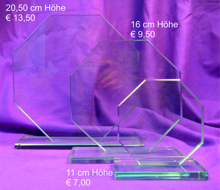 Die Gravurkosten belaufen sich auf 10 €, unabhängig vom gewählten Glaselement und Anzahl der gewünschten Gravurzeichen.