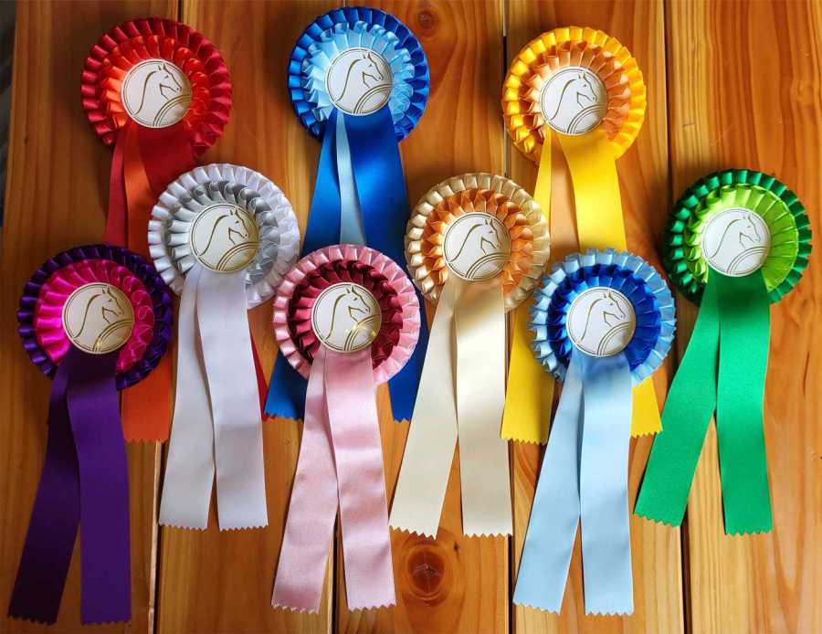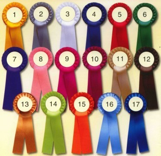 Alle Farben sind ohne Aufpreis kombinierbar, d.h. eine einzelne Schleife ist mehrfarbig, Rosette von außen nach innen in schwarz/rot/gold für Deutschland.